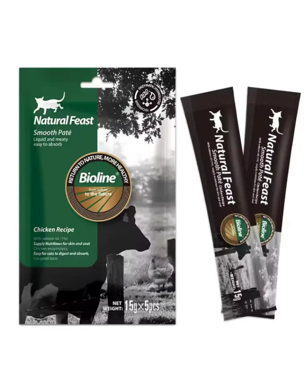 Bioline Natural Feast Smooth Pate Cat Treat Chicken Recipe 15g*5