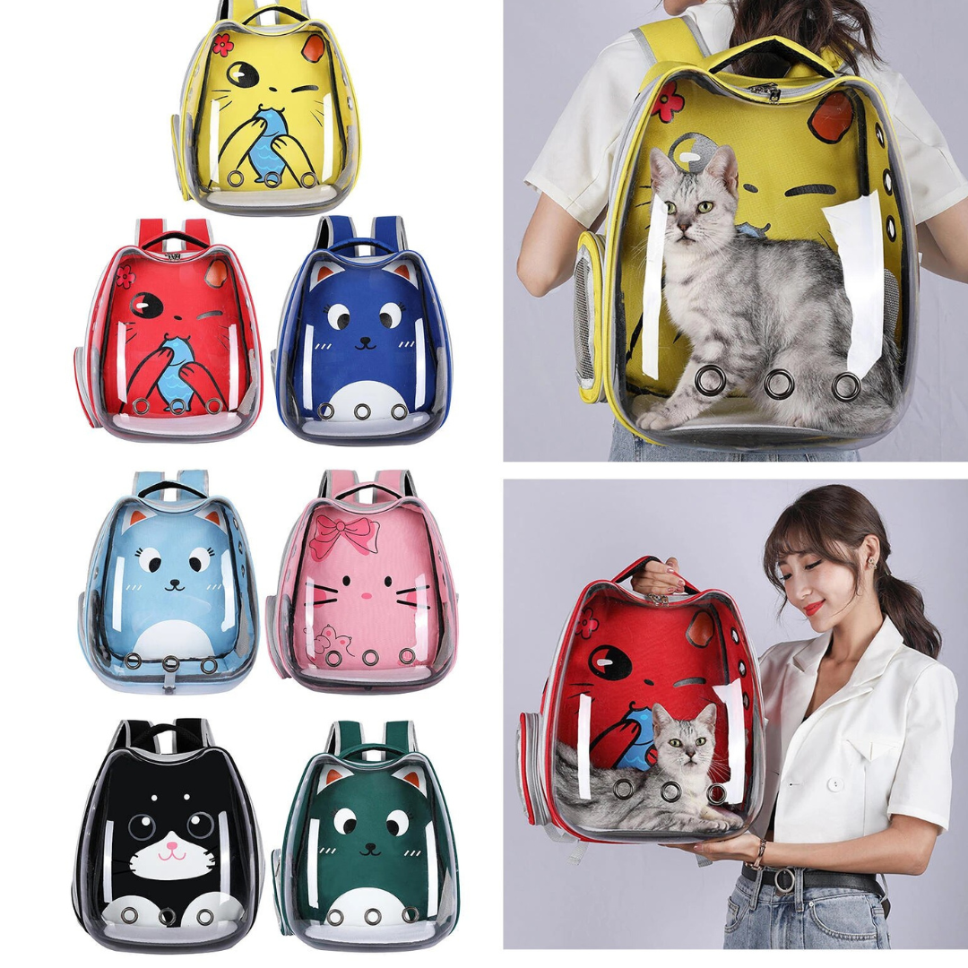 Cat Printed Backpack Carrier Transparent Portable For Cats & Small Dogs