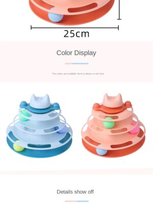 Brand new and high quality.- Cat toy ball track makes a rattling sound when rolled, durable enough for long time using.- Easy to attract cat’s attention with bright colorful balls.Cat track toy easy to attract cat’s attention with bright colorful balls.- Unique design with 4 level, there is a ball in each level.- There is a hole the top which you can insert a cat teaser.