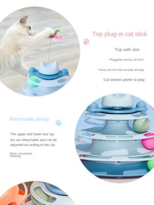Interactive Cat Toy Icecream Tower toy Ball Track 4 Levels Turntable Cat Toy Cat Circle Toy with Ball Pet Amusement Plate Track Tower