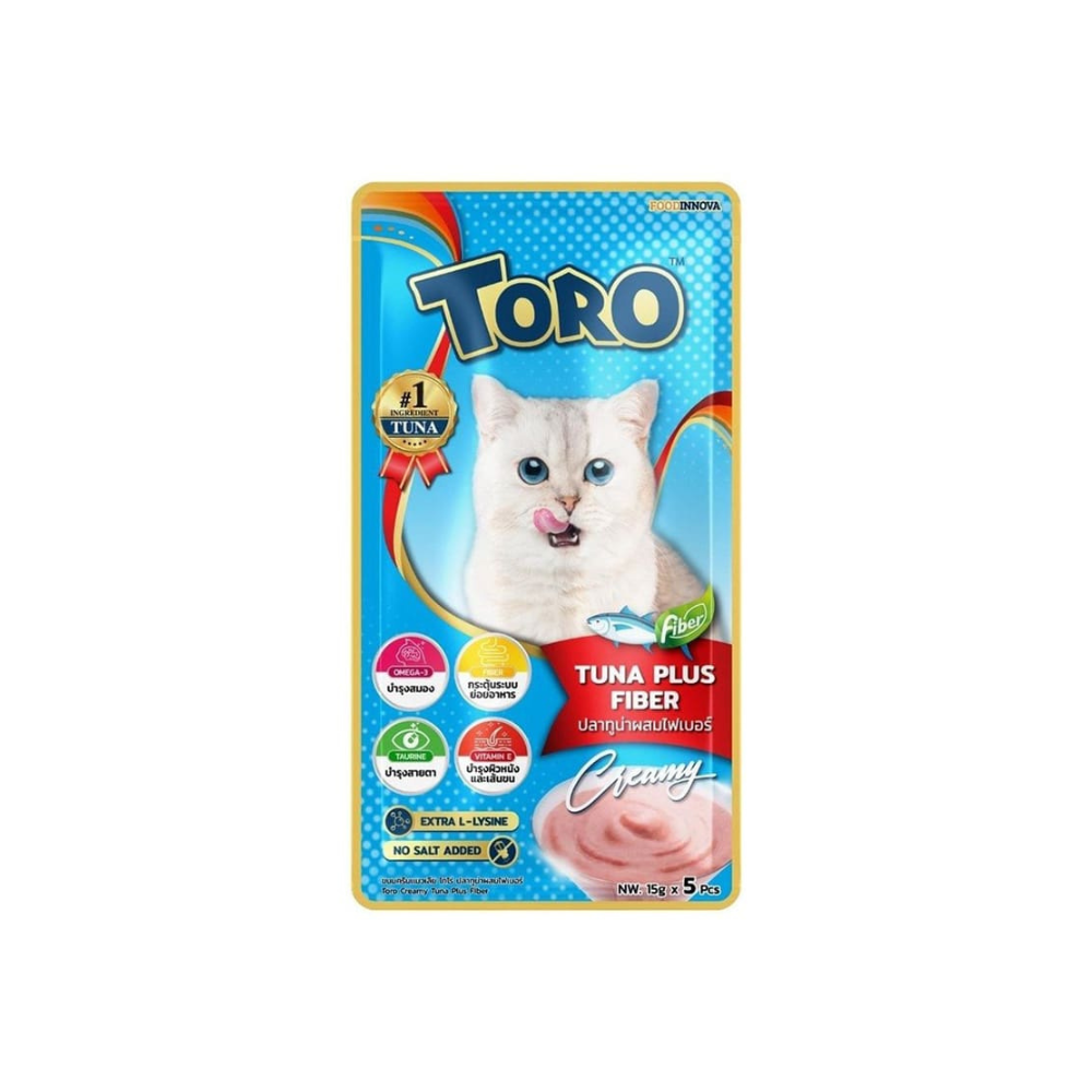 Toro Toro Lickable Treat Tuna Plus Fiber is Lickable treat for cat produced from tuna and mix with fiber which increase dietary fiber for your cat to support cats digestive system. Toro Toro Lickable Treat is enriched with Vitamin E, Taurine, Oligosaccharide and Fish Oil.”